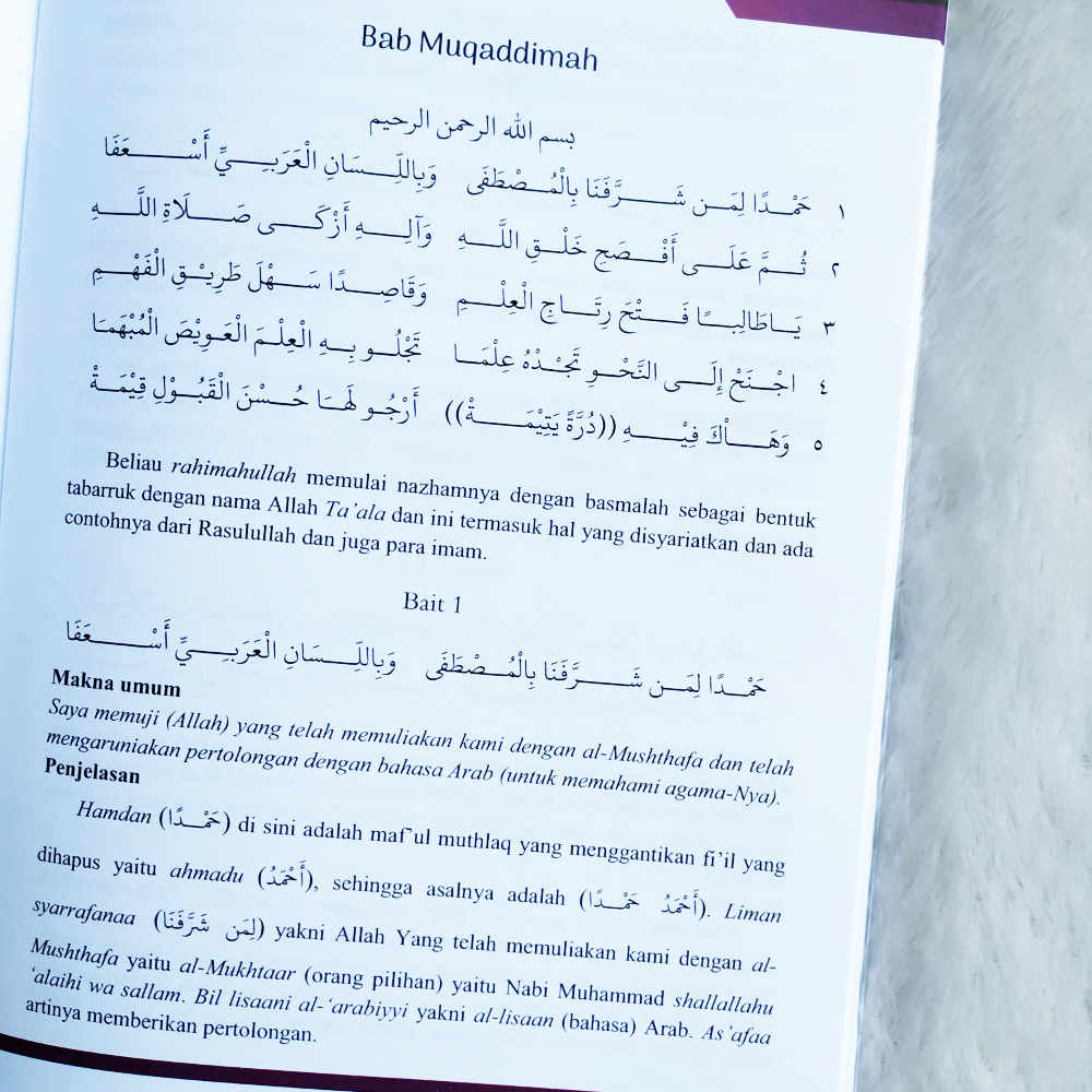 Nazham ini termasuk materi yang jarang dibahas padahal di dalamnya sarat akan ilmu dan hikmah. Untuk mempemudah para pembelajar untuk mengenal nazham tersebut dan juga memahami kaidah dasar nahwu, penyusun membuat terjemah dan juga penjelasan ringkasnya.