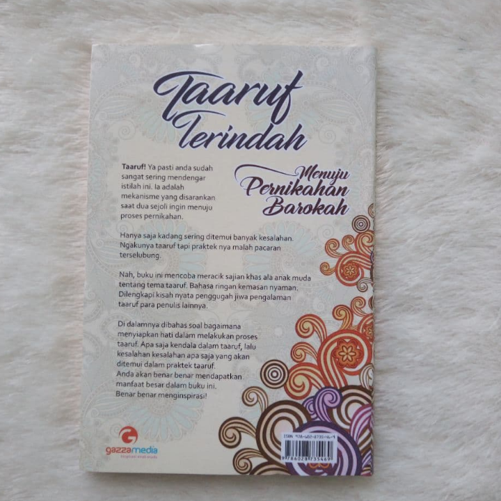 Buku ini “Buku Taaruf Terindah Menuju Pernikahan Barokah” , Buku ini membahas soal bagaimana menyiapkan hati dalam melakukan proses ta’aruf. Apa saja kendala dalam Ta’aruf, lalu bagaimana kesalahan-kesalahan yang akan ditemui dalam praktek ta’aruf.