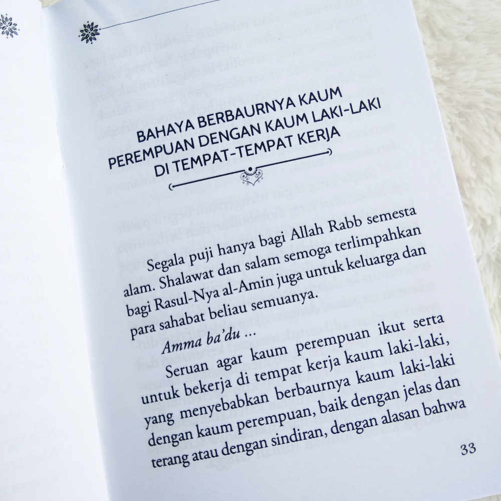 Buku ini merupakan karya Syaikh Ibnu Baz sebagai panduan untuk membentuk sikap kaum Muslimin, khususnya kaum Muslimat agar tidak melampaui batasan yang telah dibakukan oleh syariat perihal berhias diri, dan terdapat pula pembahasan terkait pandangan syariat mengenai hukum keikutsertaan wanita dalam dunia pekerjaan bersama kaum lelaki.