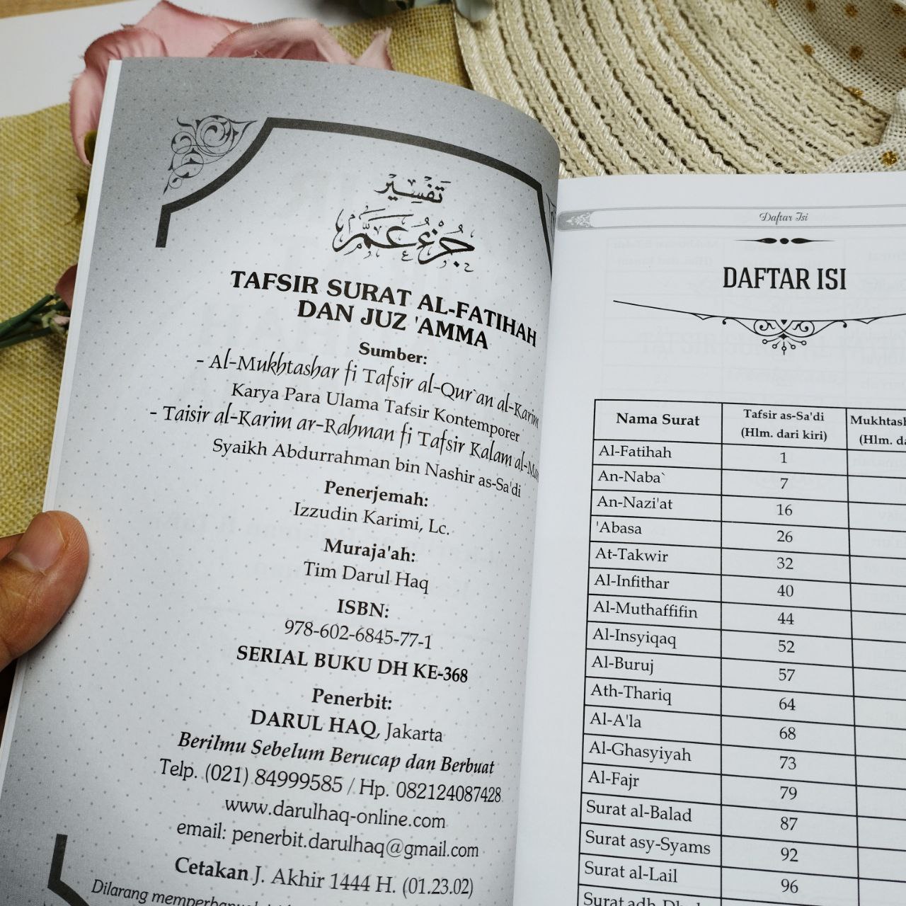 Buku ini berjudul “Buku Tafsir Surat Al-Fatihah Dan Juz ‘Amma”, Buku ini berisi penjelasan Al-Qur’an yang merupakan ilmu termulia yang seharusnya dipelajari kaum muslimin. Disajikan dalam penjelasan per beberapa ayat yang berkaitan dalam satu permasalahan, sehingga memudahkan untuk dipahami,Cocok bagi siapa saja yang ingin mempelajari ilmu Al-Qur’an.