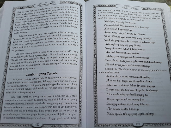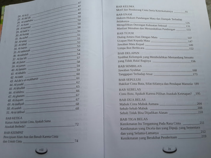 Bismillah, buku ini membahas masalah “Al-Mahabbah” yaitu cinta seorang manusia, tentang permasalahan-permasalahan didalamnya, nama-namanya, dan jenis-jenisnya beserta hukum-hukumnya. berikut di antara isi dari buku ini: