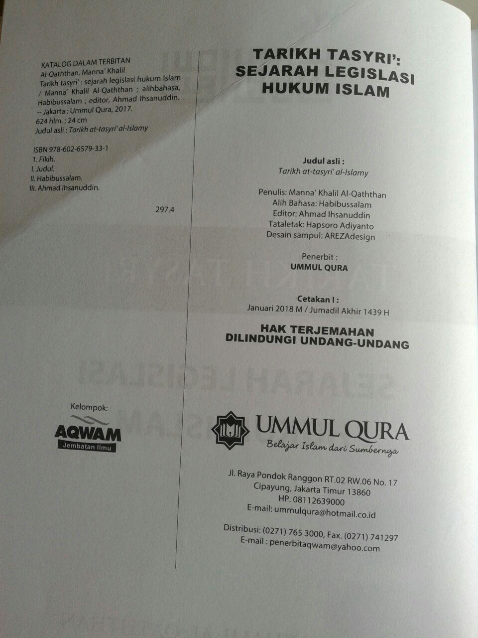 Buku Tarikh Tasyri Sejarah Legislasi Hukum Islam