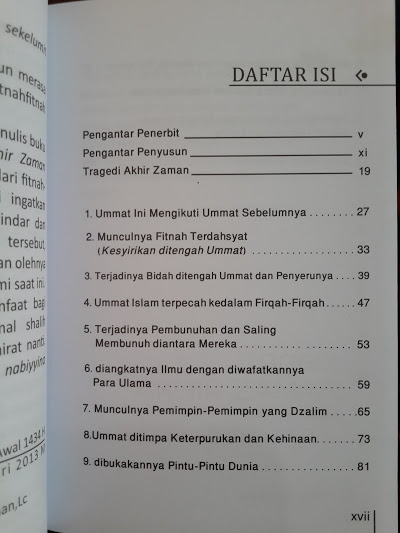 Segala puji bagi Allah Rabb semesta alam. Buku kecil ini akan membahas tragedi-tragedi yang terjadi di akhir zaman dan solusinya, berikut di antara isinya: