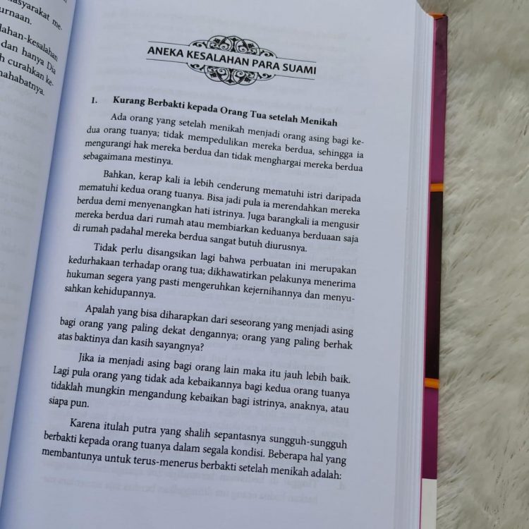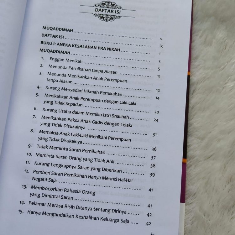 Dengan menelaah karya ini, para pembaca tak hanya akan memperoleh pemahaman yang utuh mengenai kesalahan-kesalahan yang kerap dilakukan dalam kehidupan berumah tangga, namun juga dituntun dalam memahami hak dan kewajiban semua pihak yang terlibat dalam pembentukan keluarga yang sakinah, mawaddah dan rahmah. Selamat membaca.