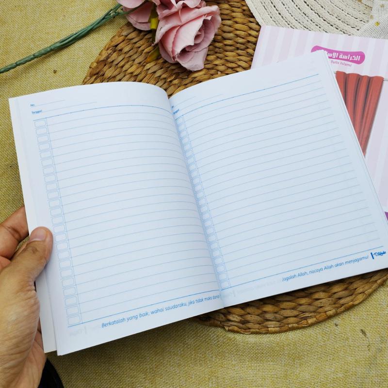 Buku tulis Islami Seri Anak Sholehah hadir untuk menemani aktivitas belajar putri kecil Anda dengan sentuhan nilai-nilai Islami.