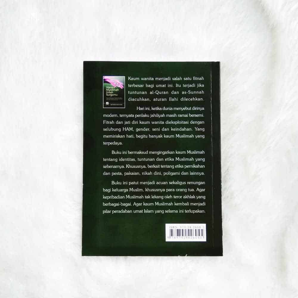 Buku ini bermaksud mengingatkan kaum Muslimah tentang identitas, tuntunan dan etika Muslimah yang sebenarnya. Khususnya, berkait tentang etika pernikahan dan pesta, pakaian, nikah dini, poligami dan lainnya.