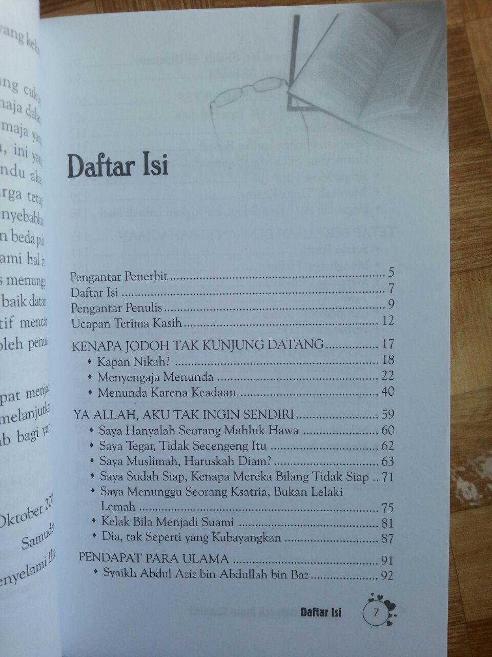 Tentang pendapat para ulama tentang kesendirian menanti kekasih, siapa tahu akan memotivasi hidup Anda menjadi lebih baik. Dan yang paling menarik adalah tips jitu bagaimana menikmati kesendirian dan mencoba berbuat sesuatu untuk mendapatkan pasangan hidup idaman. Tanpa harus banyak berkata-kata, buku ini sangat sesuai bagi remaja dewasa yang sedang galau menghitung kapan datang kekasih sejati.