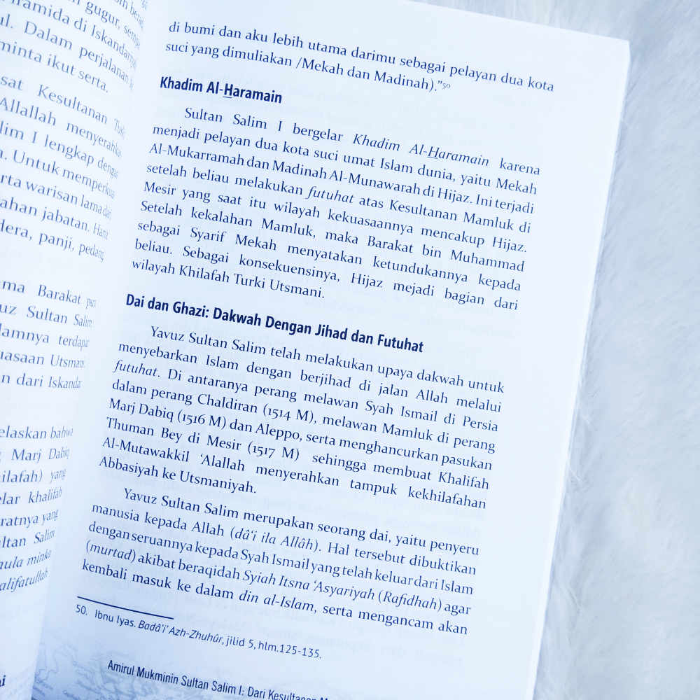 “Buku ‘Yavuz Salim’ yang ada di tangan pembaca ini menjelaskan perjuangan seorang Sultan Pendiri Khilafah Utsmaniyah dalam menegakkan Syariat Islam di muka bumi, dengan mengorbankan segala yang dimilikinya. Baik harta, tenaga, waktu dan pikiran bahkan nyawa sekalipun. Apa yang paling mengesankan, beliau dengan gagah beraninya, berhasil menghancurkan Kerajaan Syi’ah Shafawi Persia yang bertahun-tahun menebar kerusakan di muka bumi. Pengaruh kekuasaan Yavuz Salim membentang dari Maroko hingga Kepulauan Nusantara. Buku ini sangat baik untuk bacaan Sejarah Islam bagi generasi muda dan para pejuang Islam masa kini.”