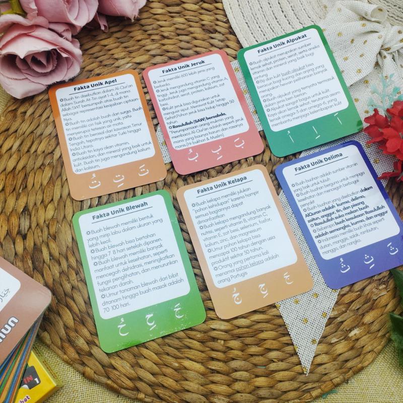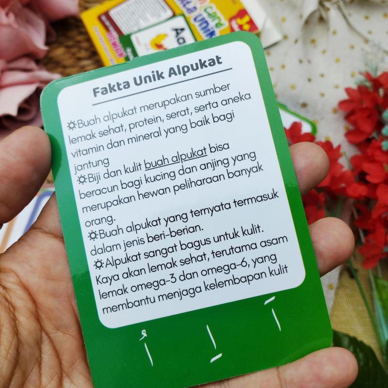 Setiap kartu dirancang dengan ilustrasi menarik dan warna cerah, dicetak di bahan art carton tebal dan glossy, serta memiliki sudut tumpul yang aman untuk anak.