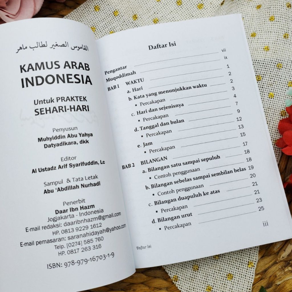 Buku Kamus Arab Indonesia Sehari-Hari ini hadir untuk memudahkan siapa pun yang ingin mulai belajar bahasa Arab secara praktis dan menyenangkan. Dengan ukuran saku, kamus ini mudah dibawa ke mana saja, sangat cocok untuk pelajar, santri, maupun siapa saja yang ingin memperkaya kosa kata bahasa Arab dalam keseharian.