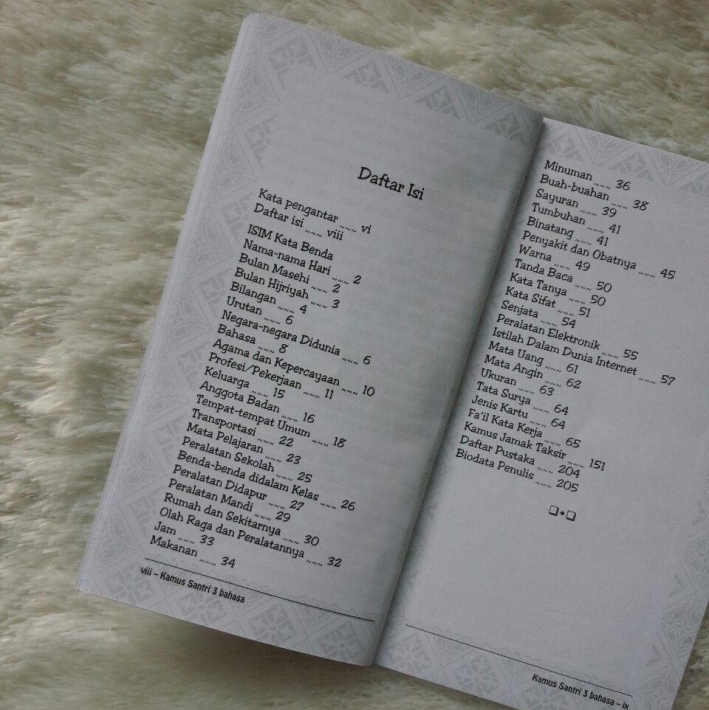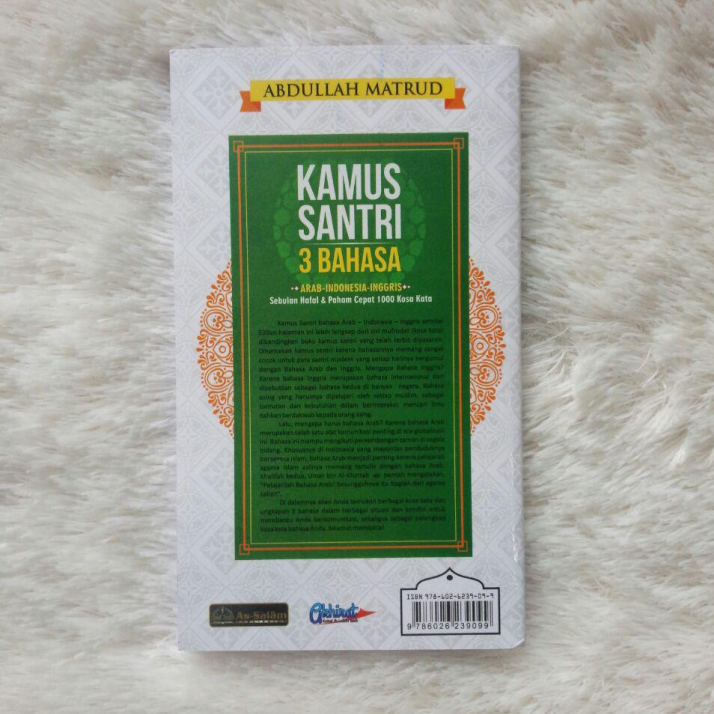 Buku ini “Kamus Santri 3 Bahasa Sebulan Hafal Dan Paham Cepat 1000 Kosa Kata”.