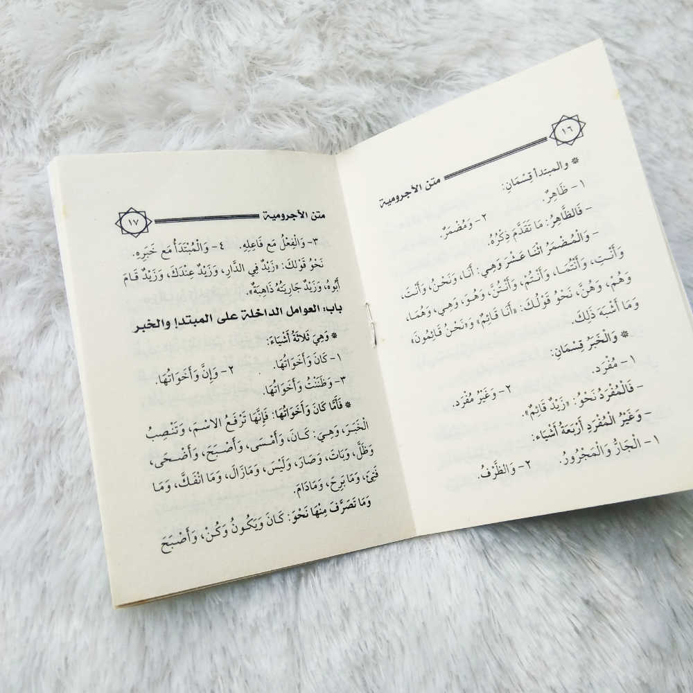 Kitab ini berjudul “Kitab Matan Al-Ajurumiyyah Fin Nahwi” , Kitab Ini adalah kitab dasar ilmu Nahwu yang paling banyak dan sering dikaji di hampir semua pesantren.