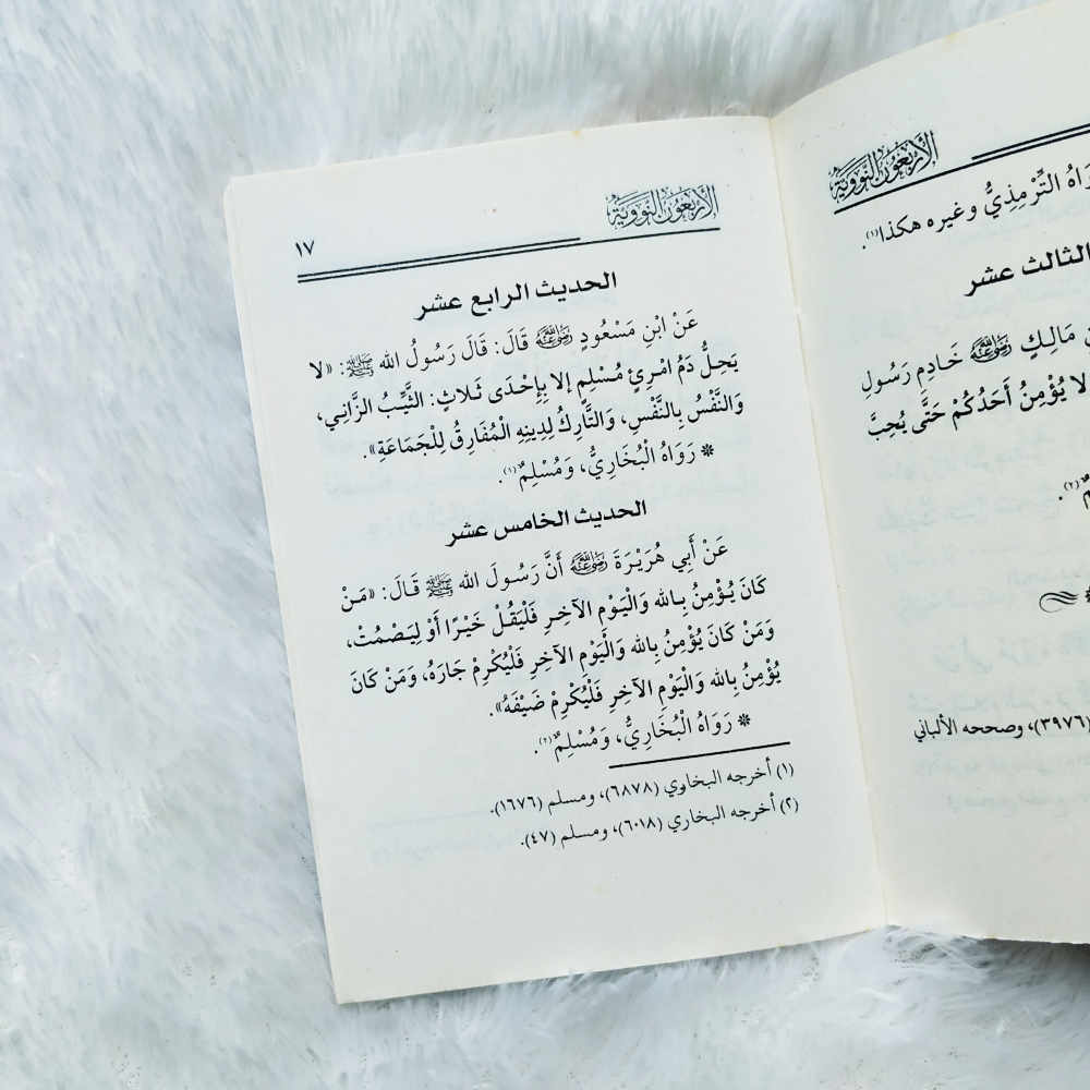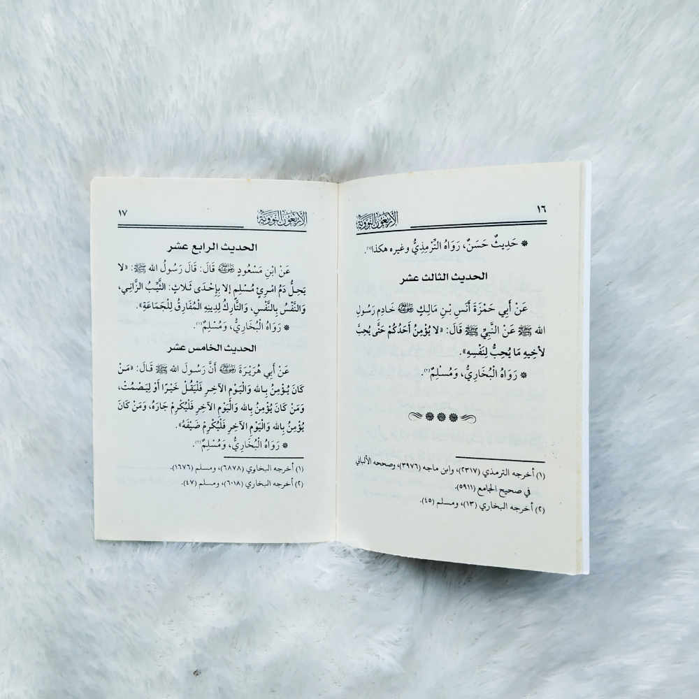Kitab Matan Al-Arbain ini memuat 42 hadits yang merupakan pokok agama Islam yang disusun oleh Imam Nawawi. Hampir seluruh permasalahan agama tercakup dalam kumpulan hadits tersebut. Kitab ini dibuat dengan ukuran saku, sehingga memudahkan untuk menghafalnya.