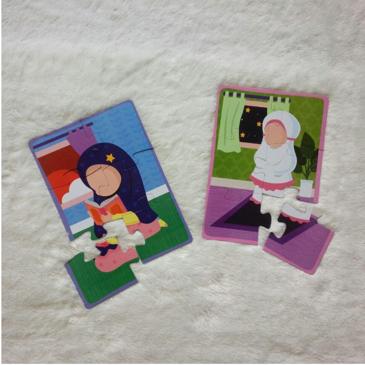 - 6 macam puzzle lantai bergambar aktivitas Ramadhan, masing-masing 6 keping.