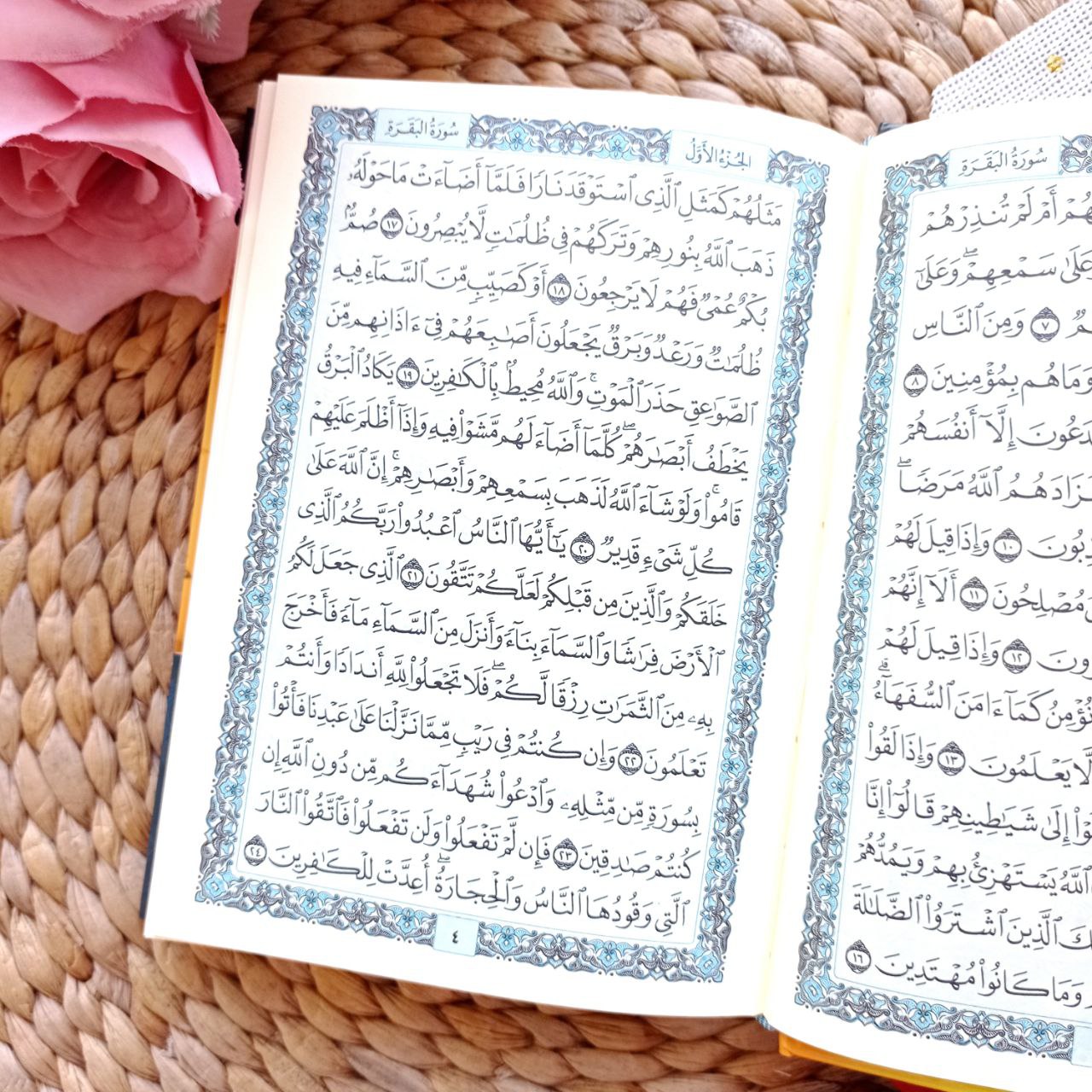 Mushaf Al-Qur’an Al-Karim ini menyajikan al-Quran tanpa terjemah untuk bacaan sehari-hari, ukurannya yang tidak besar menjadikannya mudah dibawa kemana-mana, ukurannya yang tidak terlalu kecil juga membuat tidak letih ketika membaca.