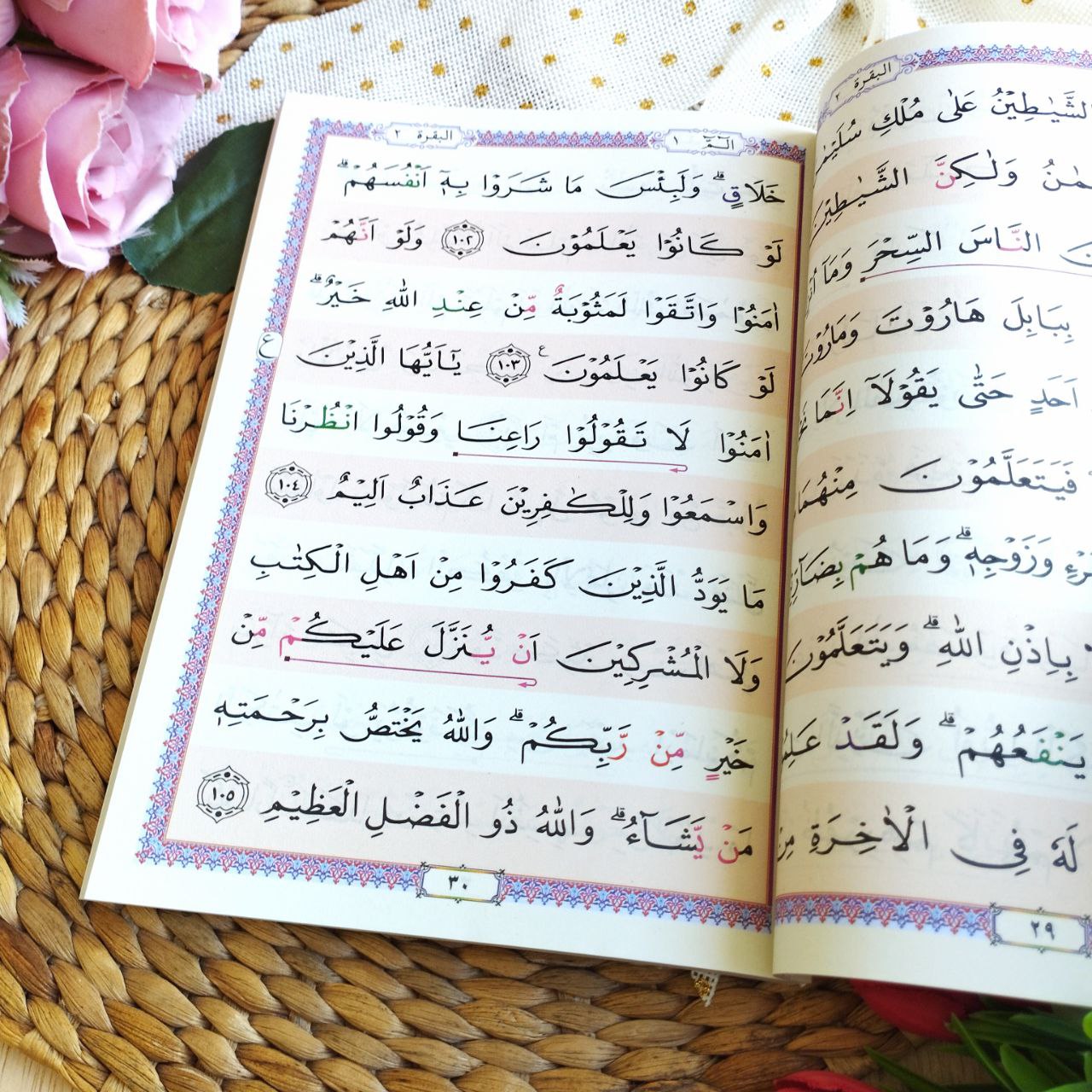 Mushaf ini juga dilengkapi dengan sistem warna untuk membantu pembaca dalam memahami aturan waqf (henti) dan tajwid (pembacaan yang benar). Hal ini memudahkan pengguna untuk mengikuti aturan-aturan penting dalam membaca Al-Qur’an dengan baik dan benar.