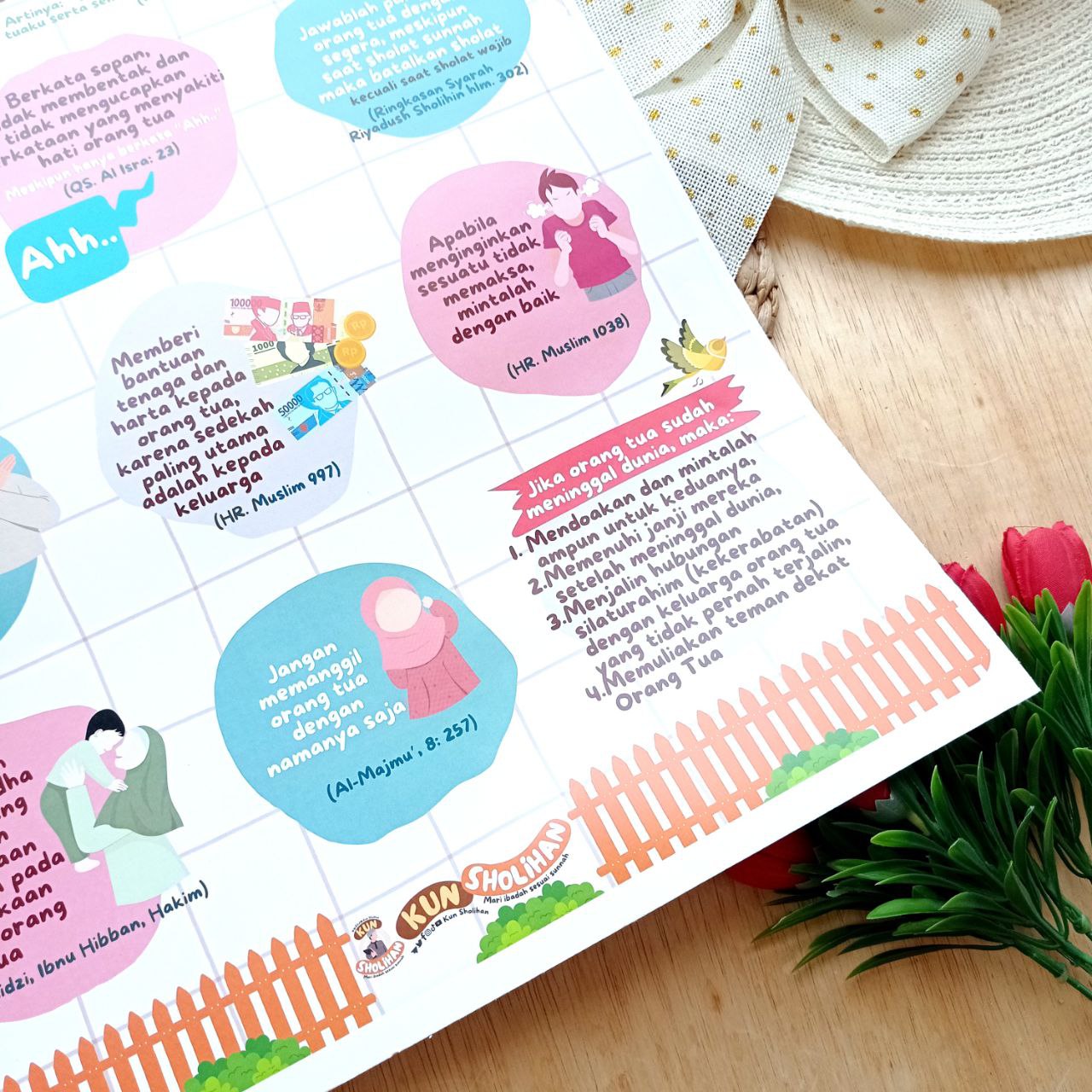 Ini adalah Poster Adab Kepada Orangtua, menampilkan berbagai adab-adab kepada orang tua yang diambil dari ayat-ayat Al-Quran dan juga terdapat adab bagaimana jika orangtua telah tiada dan juga doa untuk kedua orangtua.