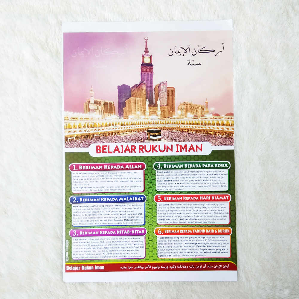 Alhamdulillah kini sudah hadir “Poster Belajar Rukun Iman” poster ini menampilkan Rukun Iman untuk anak-anak dan dewasa yang mudah dipahami dan bagus untuk diletakkan pada di rumah, mading masjid, dll.