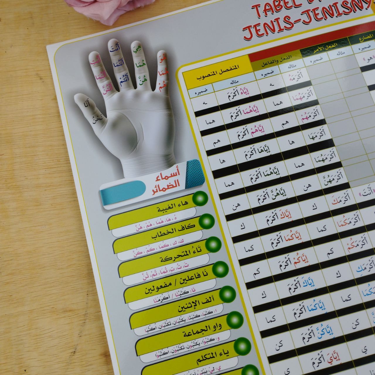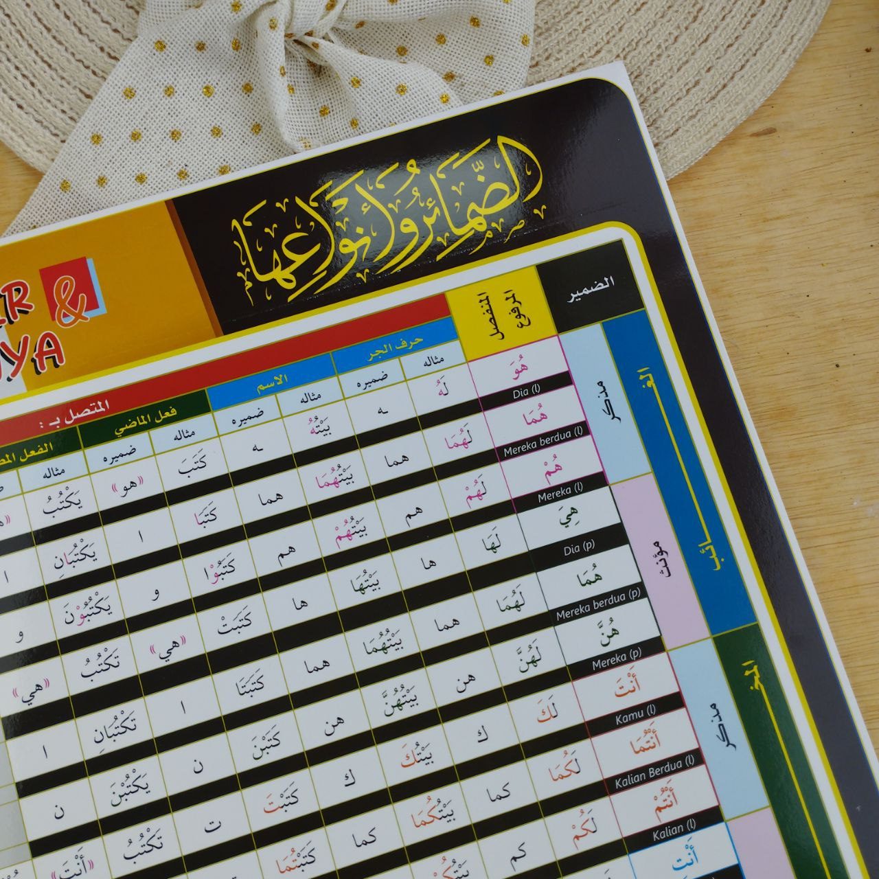 Jelajahi dunia bahasa Arab dengan lebih mendalam melalui poster ini yang menampilkan tabel dhomir beserta jenis-jenisnya. Dengan desain yang menarik dan penuh warna, serta ukuran besar (54 cm x 38 cm), poster ini akan menjadi panduan yang sempurna untuk memahami dan menghafal dhomir dalam bahasa Arab.